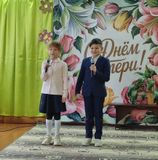 Вместе с педагогом Чудаковой Н. А. юные артисты из школьного театра «Теремок» показали зарисовки из учебной и семейной жизни, а наши маленькие ведущие, ученики 4 класса Морозов Савелий и Левина Варвара, читали стихотворения и поздравления для мам.
