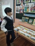 Учащиеся с удовольствием рассматривали карту России, на которой можно увидеть, где и какие народы проживают. Это карта - часть игры "Государственные символы России". Играя в неё, отвечая на вопросы, можно узнать много нового о нашей огромной стране. Ещё детям показали иллюстрации национальных костюмов некоторых народов, проживающих в России. У каждого народа ещё есть и свои сказки. Сегодня ребята знакомились со сказками северных народов.